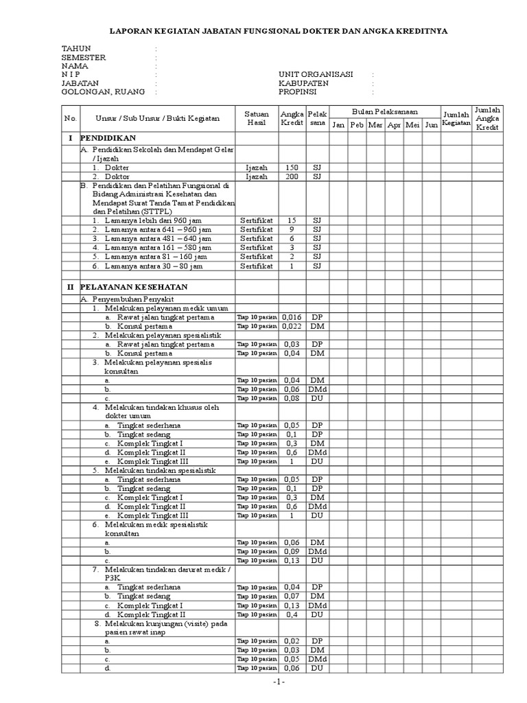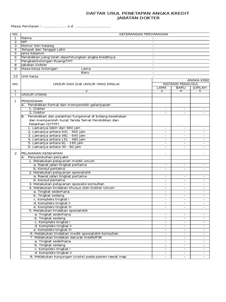 Pengumpulan dupak pertama bagi calon jf belum difasilitasi… dupak dokter. Sebelumnya kami telah banyak sekali membagikan aplikasi kepegawaian terutama untuk para pns (pegawai negeri sipil), asn (aparatur sipil negara) dalam hal mengeloa angka kredit untuk kenaikan pangkat dan golongan serta pedoman perhitungannya seperti dibawah ini : Demikian share file aplikasi dupak download format microsoft excel. Butir kegiatan dokter doktor lamanya lebih dari 960 jam lamanya 641 sampai 960 jam lamanya 481 sampai 840 jam lamanya 161 sampai 480 jam lamanya 81 sampai 160 jam lamanya 30 sampai 80 jam melakukan pelayanan medik umum a penyembuhan penyakit. Jabatan fungsional, kesehatan, microsoft excel, nutrisionist, perawat aplikasi dupak, panduan, juknis dan format contoh untuk pengajuan angka kredit judul file: